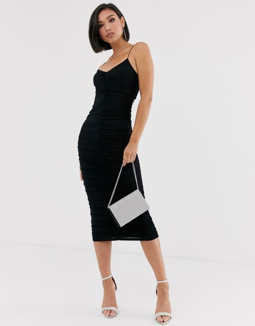 Length approx 126cm495 Based on. Petite Black Strappy Midi Dress. Strappy Shirred Sleeveless Midi Dress.